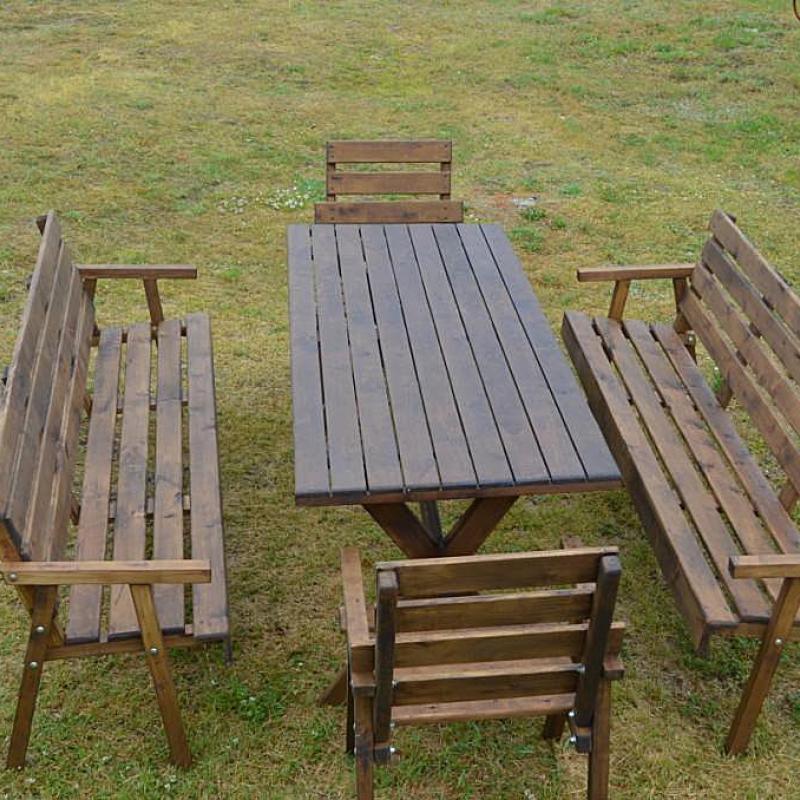 Столовая группа из дерева на 6 человек. Идеально для размещения в саду, на террасе или приусадебном участке.